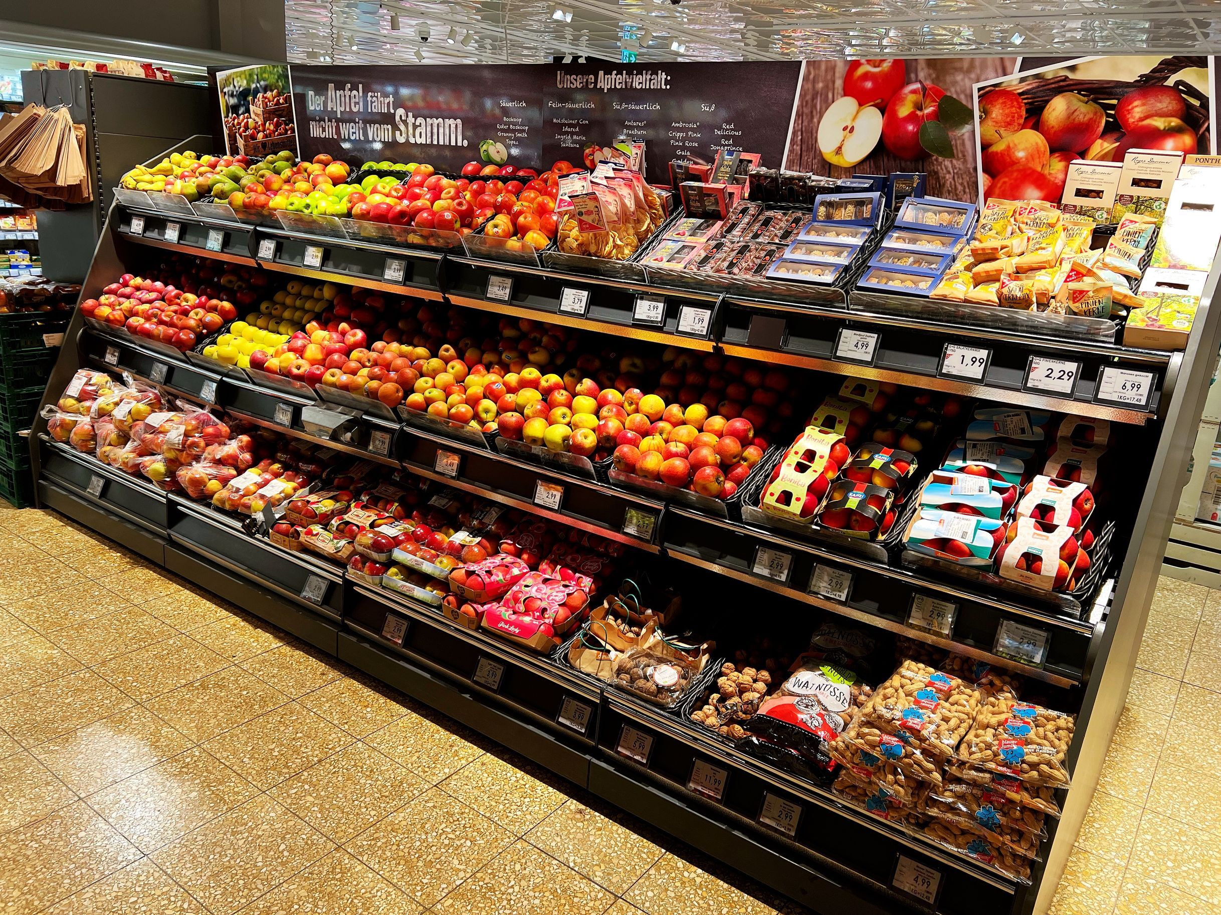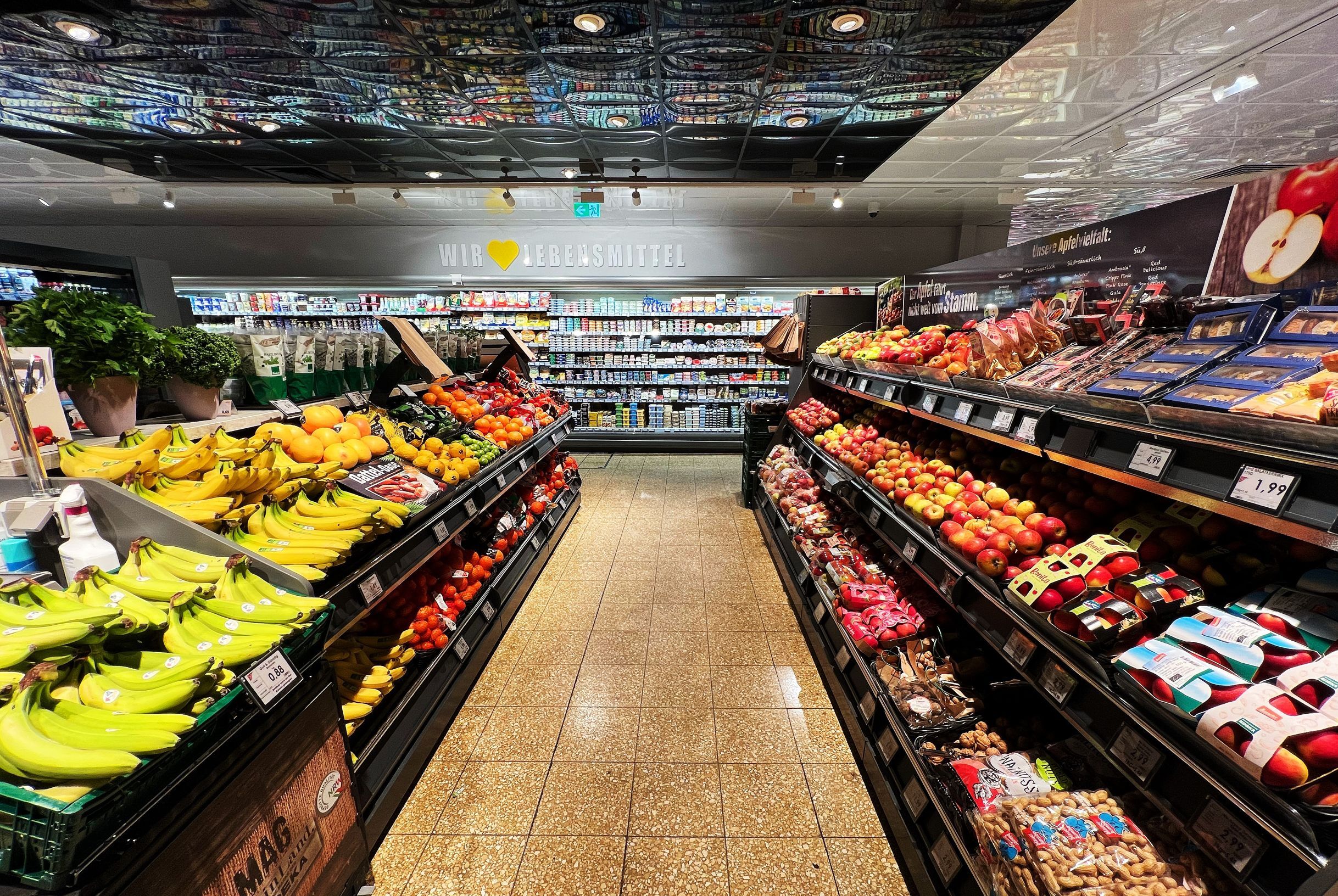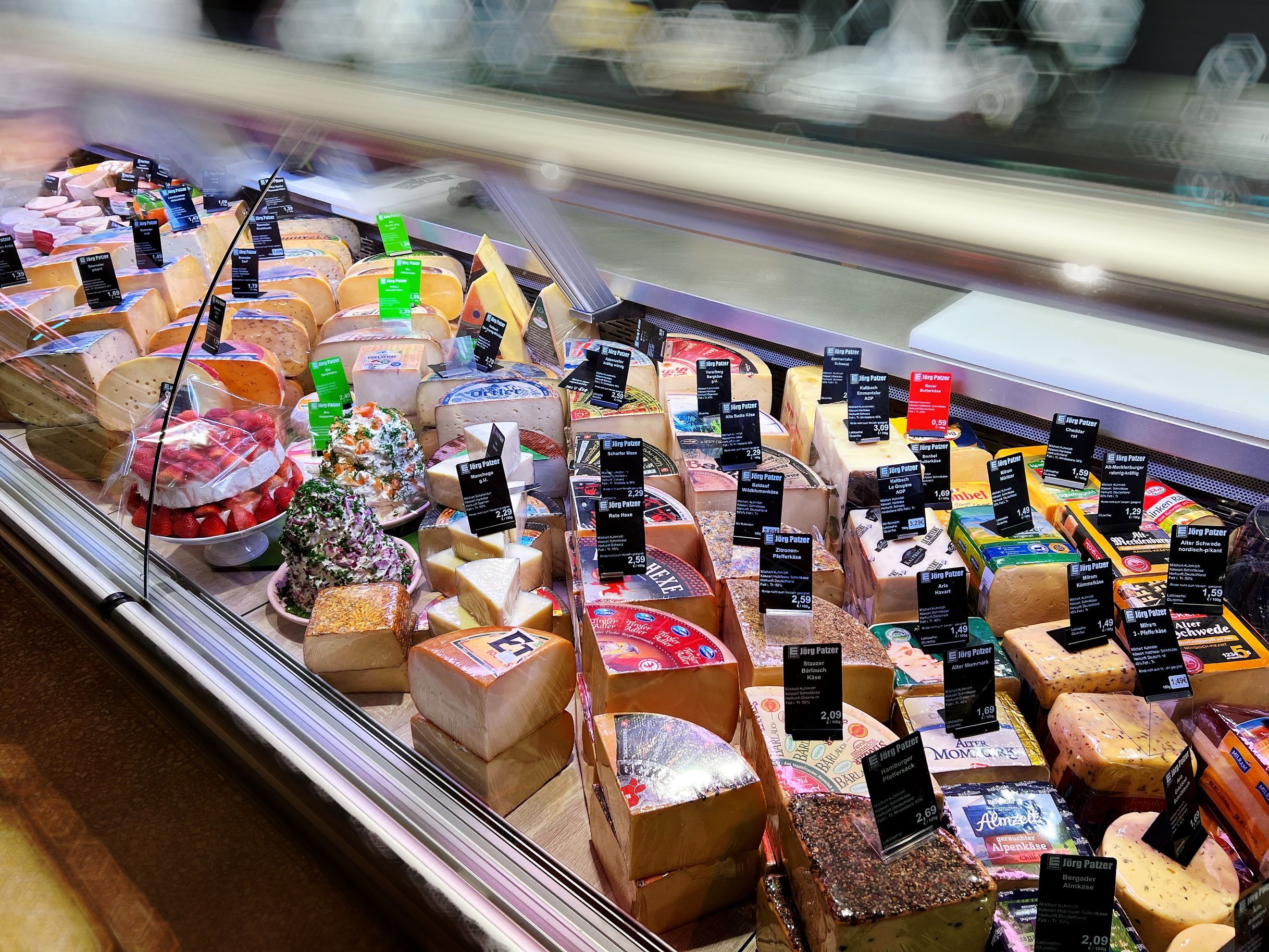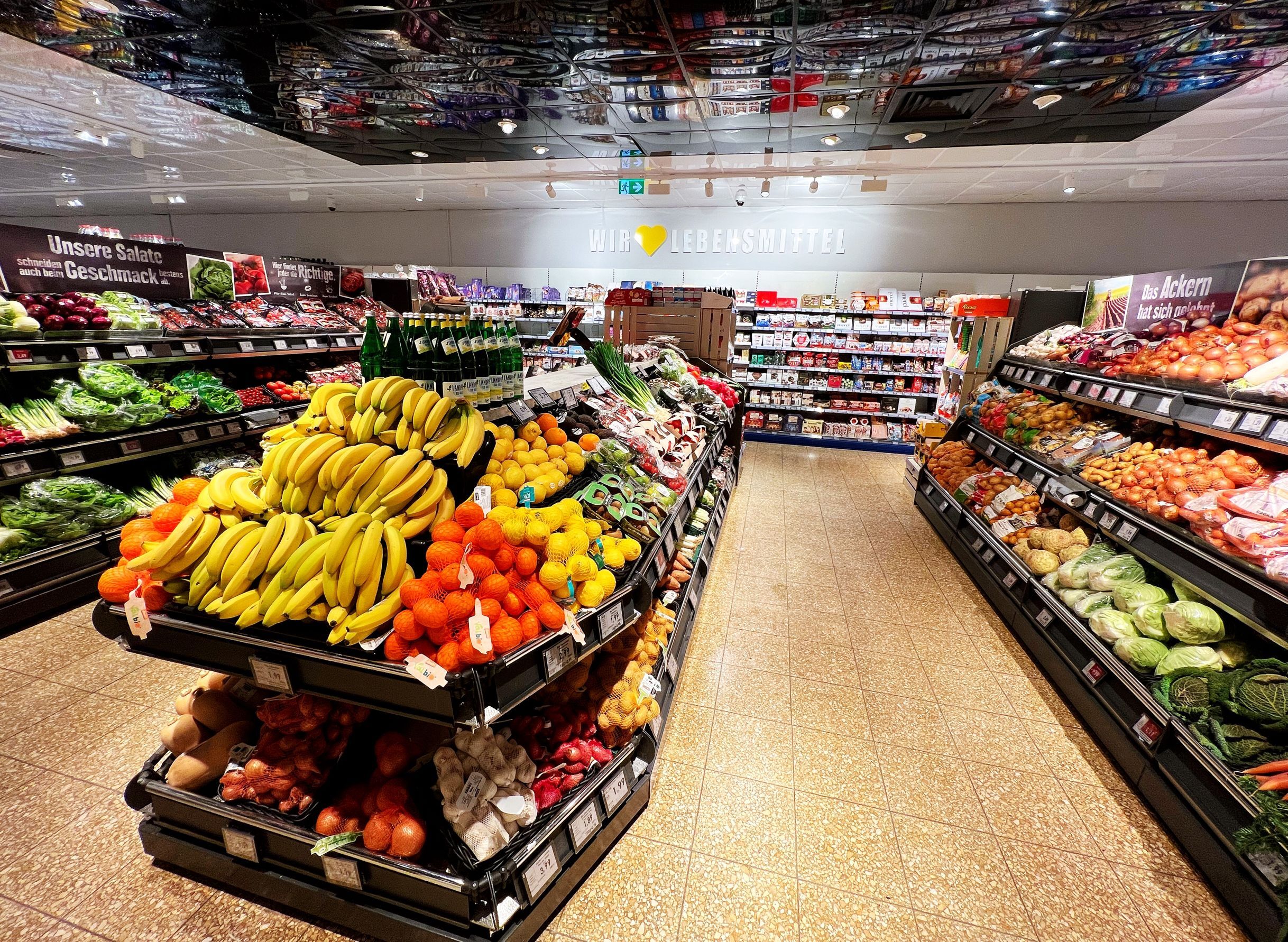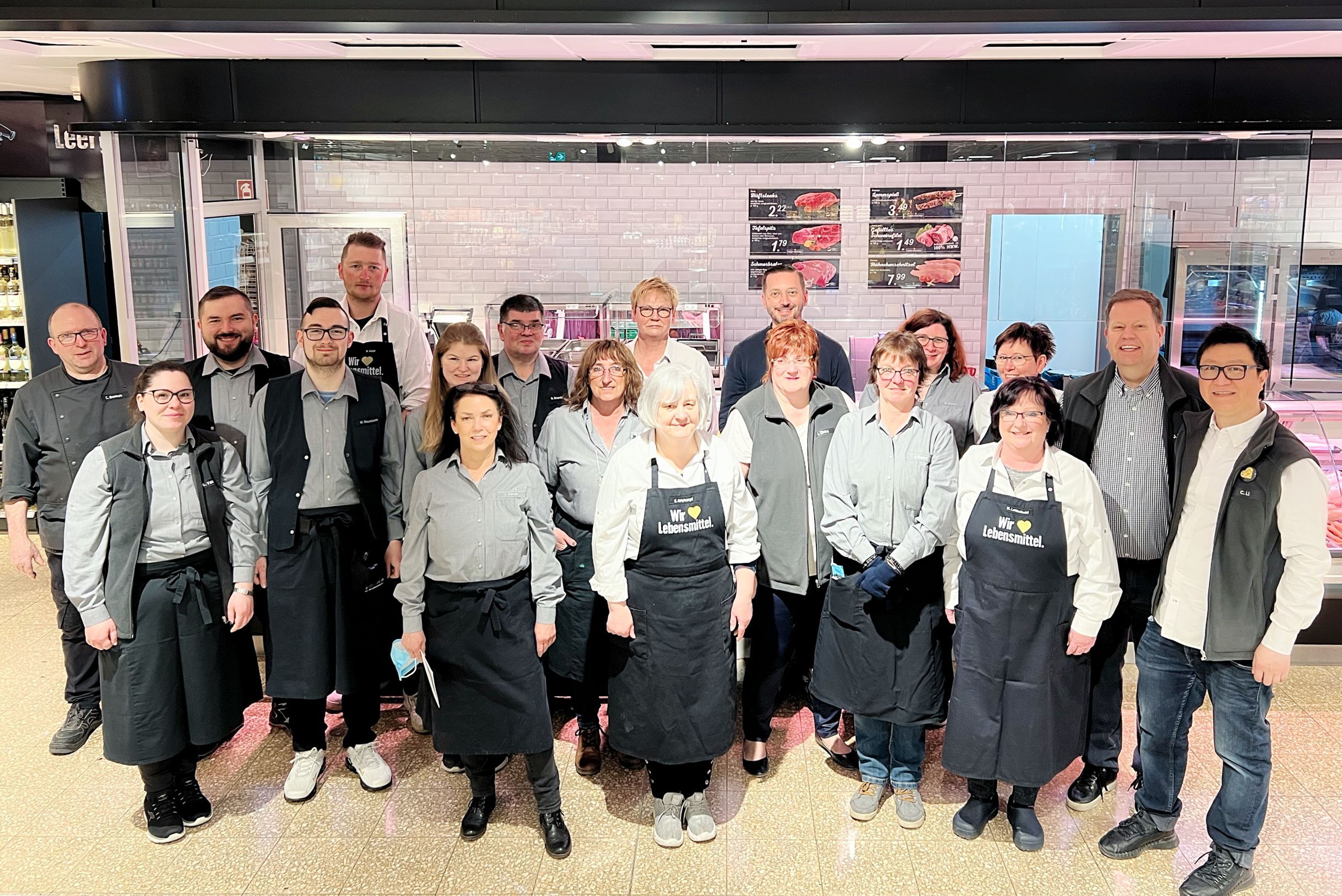 Auf knapp 950 qm erwartet den Kunden ein familiär wirkender Markt in der Nachbarschaft. Die meisten der Mitarbeiterinnen und Mitarbeiter sind schon von Beginn an dabei und kennen viele ihrer Kunden mit Namen. Man kennt sich also – und auch wenn der Markt schon einige Jahre auf dem Buckel hat, ist das Sortiment doch stets aktuell. Den Kunden erwartet ein gut sortiertes und durchdachtes Sortiment im Markt, frische Fleisch- und Wurstwaren und eine große Auswahl an Käse an der Bedientheke. Und sogar frischen Fisch gibt es täglich an der Theke zu kaufen.